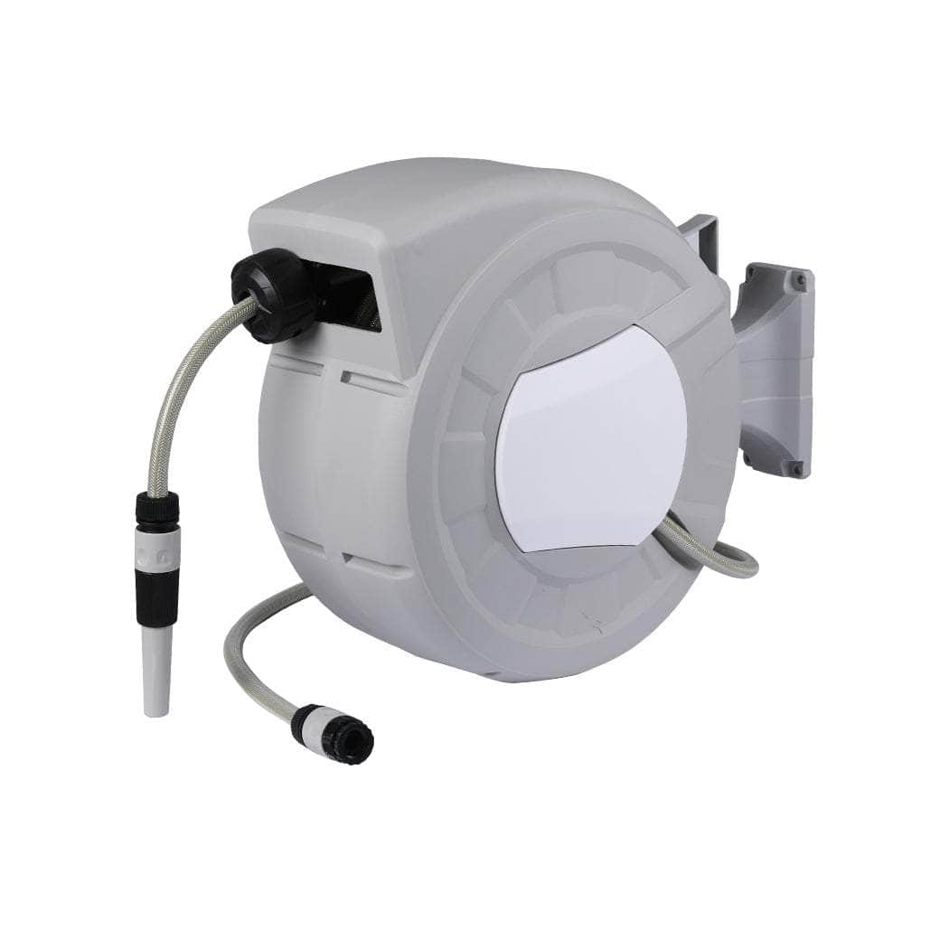 DESCRIPTIONEase your watering task with our Retractable Hose Reel. A great practical product that will seamlessly fit in with your everyday needs whether it may be sprinkling water on your beautiful plants or high-pressure rinse for your car this hose system is ready to step in.