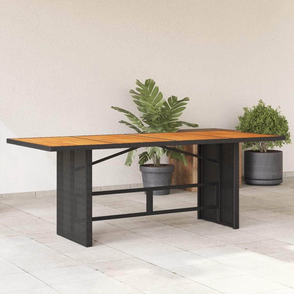 This garden table with a wooden top, designed with clean and simple lines, is an excellent choice for your garden, patio, and other outdoor space. Durable material: PE rattan, also known as poly rattan, is a strong, low-maintenance synthetic material that looks like natural rattan. It's lightweight, easy to clean, and commonly used for outdoor furniture due to its durability and weather-resistant properties.Stable and easy-to-clean tabletop: This garden table has an acacia wood top that is sturdy, durable, and easy to clean with a damp cloth.Robust and stable frame: The powder-coated steel frame ensures that the garden furniture is strong and stable for daily outdoor use. Good to know:To make sure your outdoor furniture stays beautiful, we recommend protecting it with a waterproof cover.