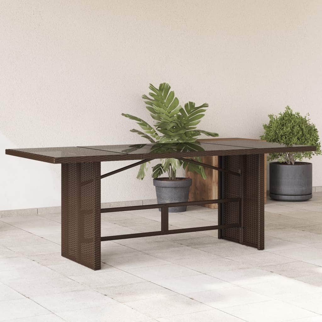 This garden table with a glass top, designed with clean and simple lines, is an excellent choice for your garden, patio, and other outdoor space. Durable material: PE rattan, also known as poly rattan, is a strong, low-maintenance synthetic material that looks like natural rattan. It's lightweight, easy to clean, and commonly used for outdoor furniture due to its durability and weather-resistant properties.Glass tabletop: The outdoor table's top is made from strong and durable tempered glass, making it easy to clean with a damp cloth and adding a touch of elegance to your outdoor space.Robust and stable frame: The powder-coated steel frame ensures that the garden furniture is strong and stable for daily outdoor use. Good to know:To make sure your outdoor furniture stays beautiful, we recommend protecting it with a waterproof cover.