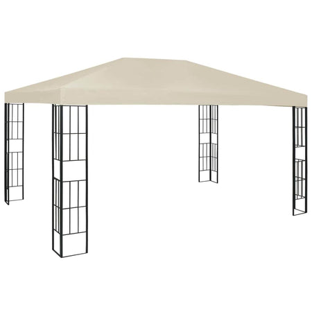 This spacious gazebo will make an elegant addition to your outdoor living space while keeping your family and guests cool and shaded on sunny days. The vented canopy will keep the sun and rain from spoiling the fun at family gatherings, barbecues, afternoon picnics, and birthday parties. The party tent has a sturdy steel construction with decorative square details and a polyester roof. The canopy has reinforced corners and hook and loop fasteners with which it is easily attached to the gazebo's frame. Note: The gazebo has not been designed as a permanent structure and it is not recommended to use it in extreme weather conditions.