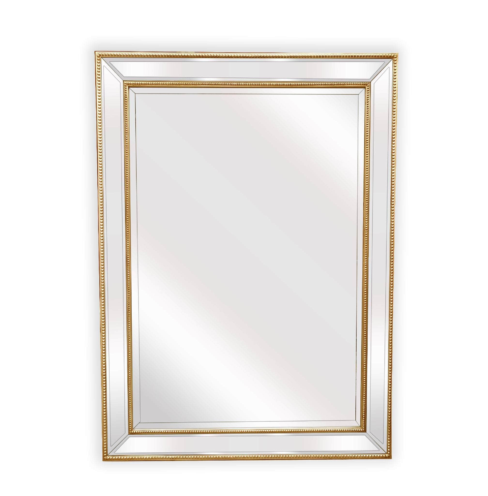 The Gold Beaded Framed Mirror - Rectangle 80cm x 110cm is a stunning addition to any home decor. Measuring 80cm x 110cm, this mirror is the perfect size for hanging on a wall or placing on a dresser or vanity.