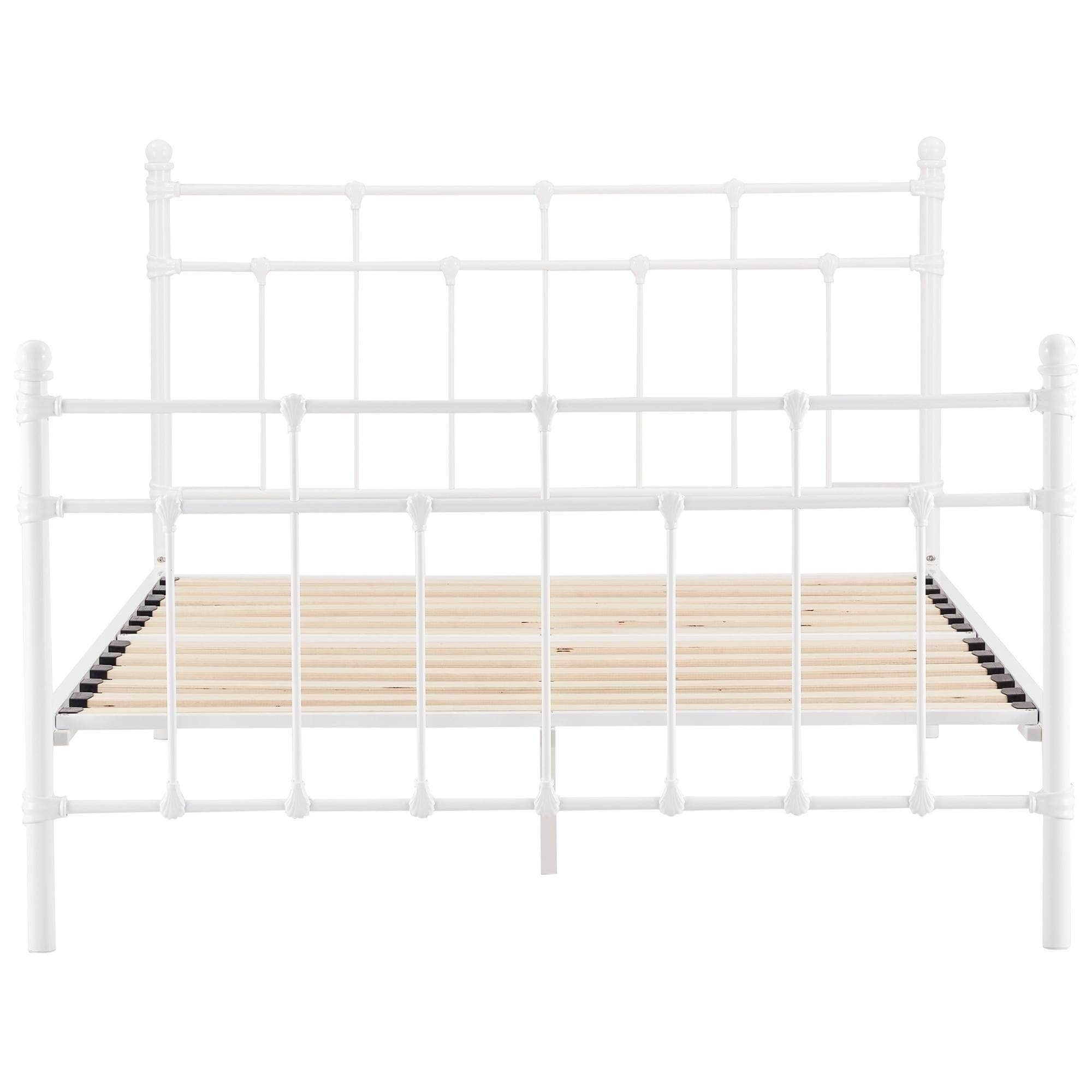 This bed is the epitome of loveliness with strength. The King Single bed, designed in a contemporary style, is simple and stunning to fit into any style or theme of the bedroom. It has great functionality as well, because it has an elevated base, allowing convenient storage underneath the bed. The bed has a beautiful headboard and footend, adding a modern look to the bedroom decor. It has a durable metal frame with a powder-coated finish. The bed stands strongly due to a supportive base with strong plywood slats and centre support legs. The gorgeous bed in white gloss can easily withstand a weight of up to 125 kg. The easy-to-assemble bed comes with a one-year warranty.