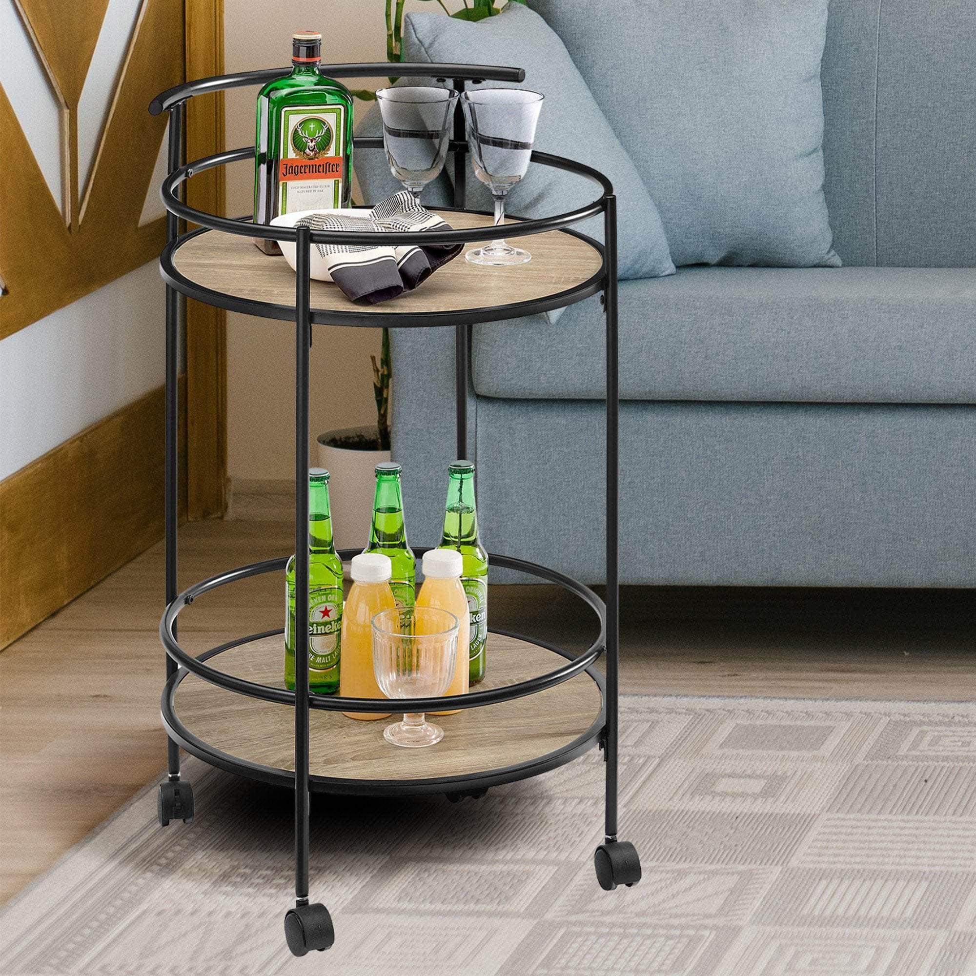 Elevate your culinary convenience with Sarantinos Reno Mini Bar Cart Caddy. Compact, versatile and chic, this piece boasts a sleek round design, a metal frame, and a grey oak tabletop, marrying style with practicality. Navigate effortlessly with its universal castors, ensuring easy mobility. Roll into an organised and stylish kitchen space with the Mini Bar Cart Caddy from Sarantino.