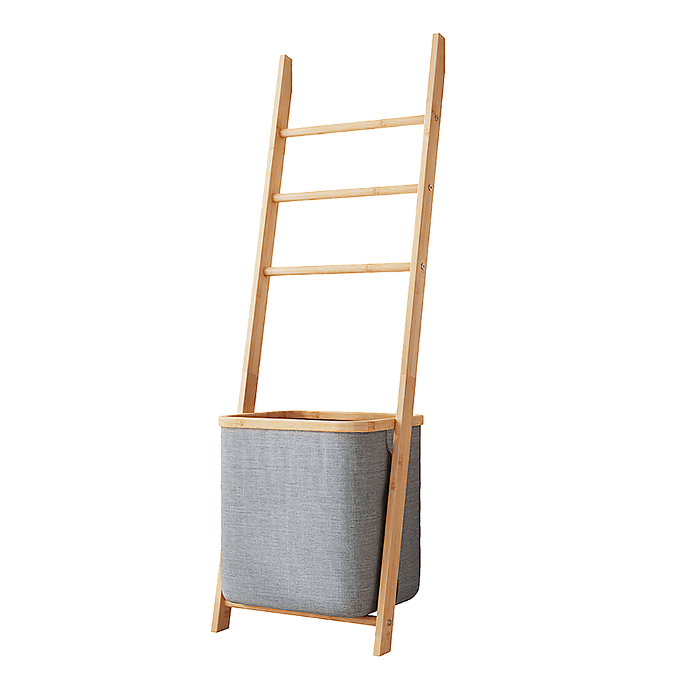 Experience the durability and elegance of our natural wood shelf and laundy hamper today!