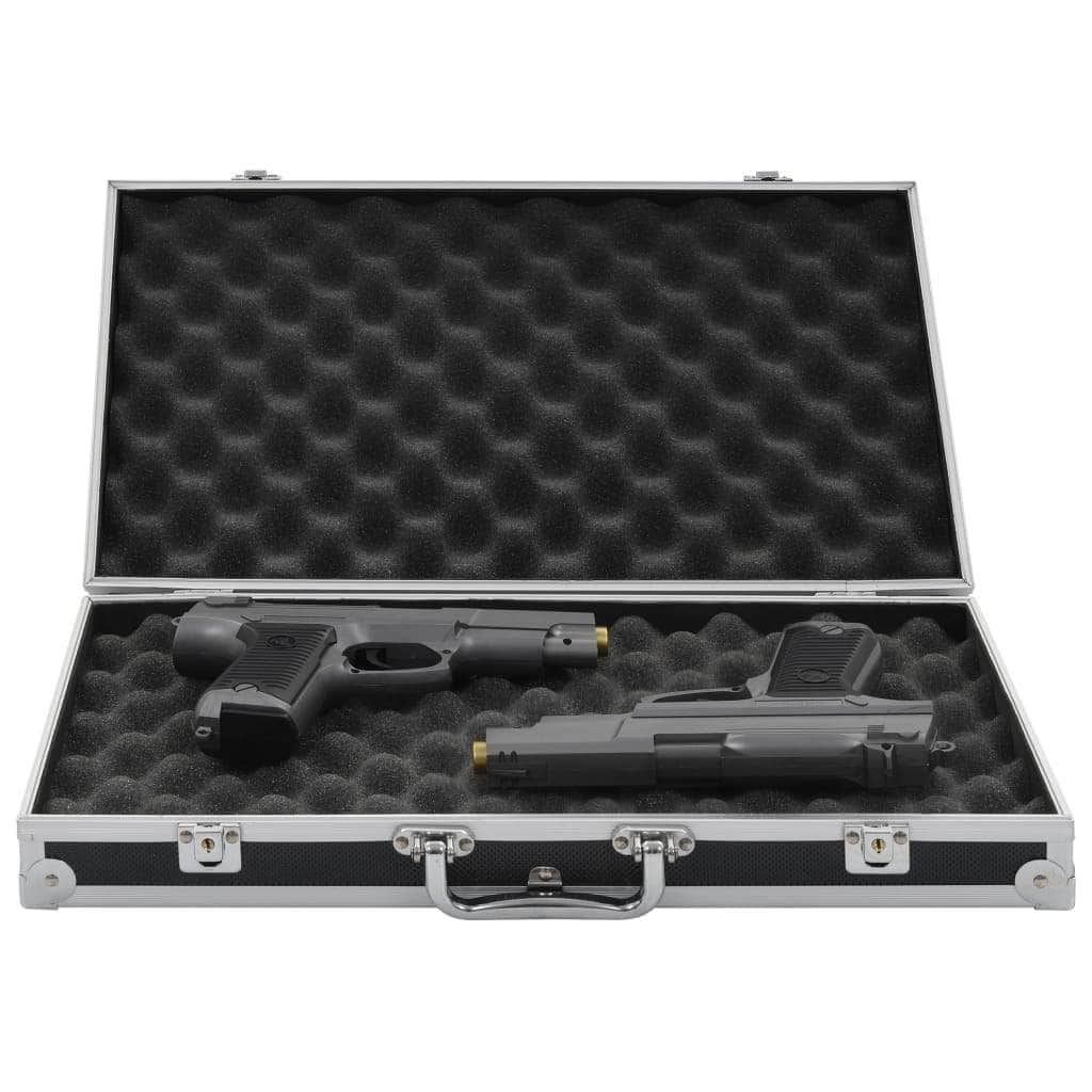 Use this gun case to satisfy your personal needs for storing or transporting your guns! Made of wood with a layer of ABS and full aluminium trimming, the box is very sturdy and hardwearing. The interior of the case features a top layer of foam which is shock-resistant and suitable for transporting. What's more, the pistol case can be locked for added security. Delivery includes 1 gun case and 2 keys.