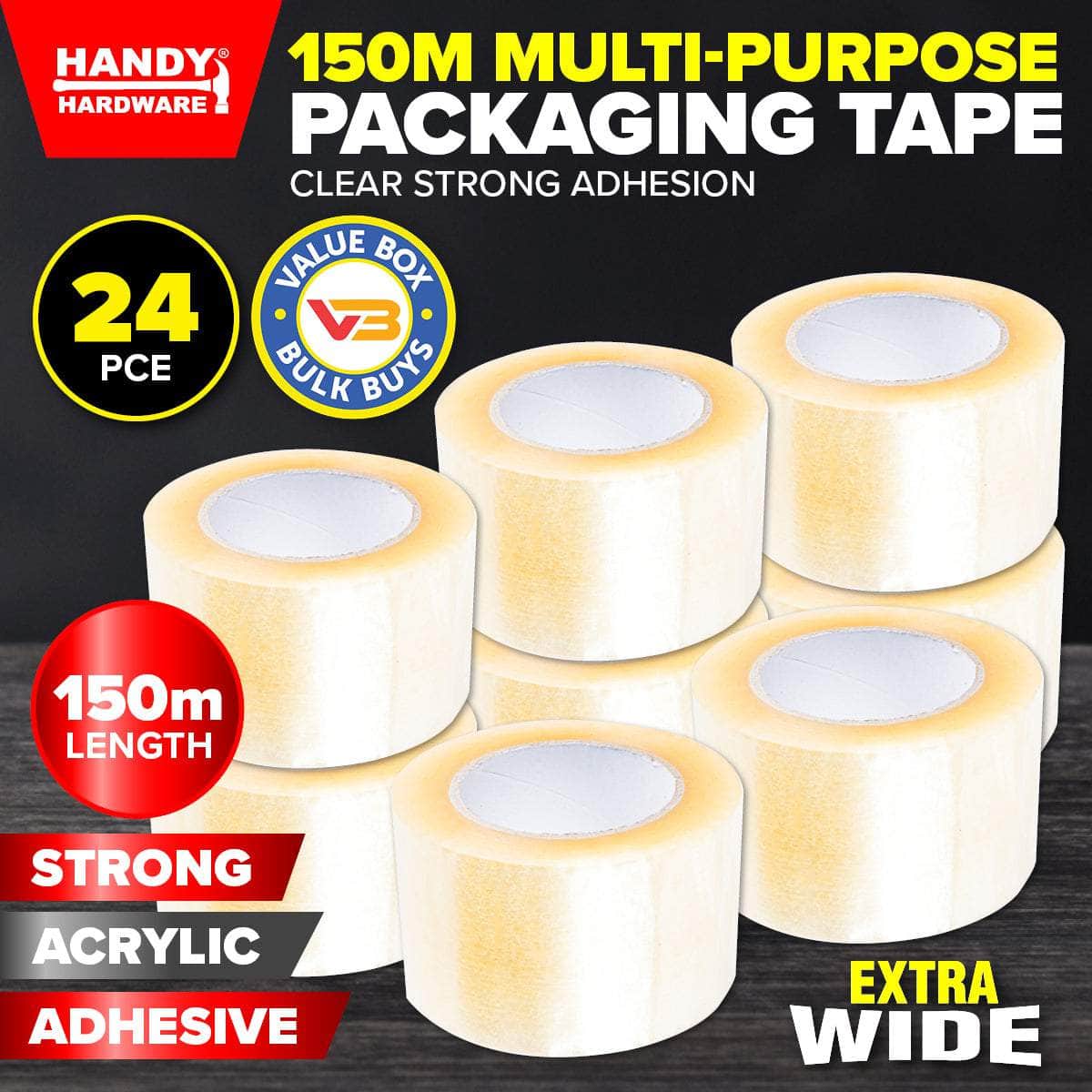 Handy Hardware This extra wide all purpose packaging tape is perfect to use for sealing, wrapping and enclosing your boxes and packages. Ideal for home, work, warehousing and office environments.