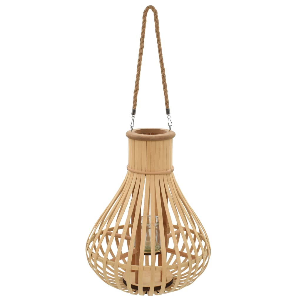 - Material: Bamboo lantern + glass candle jar