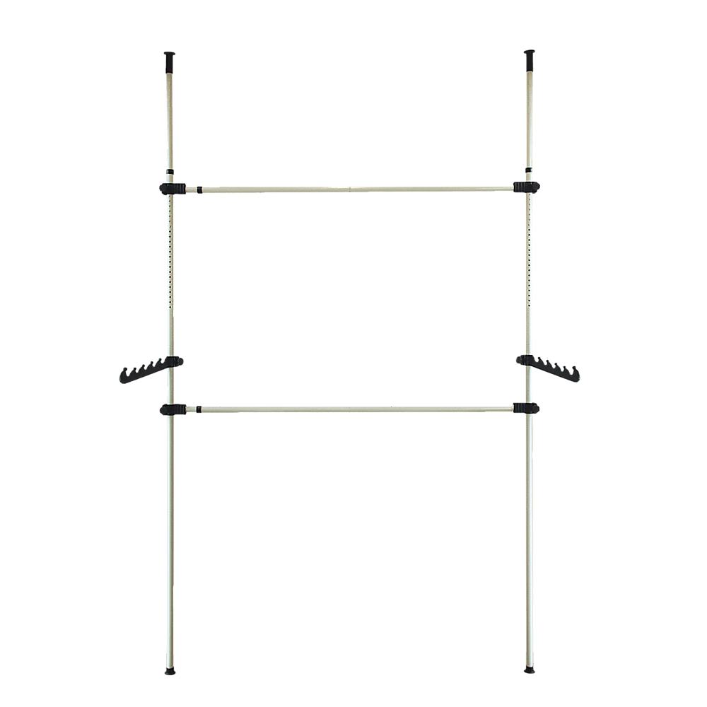 The rails are adjustable so will fit any space or closet easily. The poles are lightweight enough for easy assembly and handling.