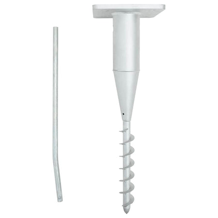 Upgrade your terrace with this metal in-ground parasol base for a sleek and space-saving alternative to bulky umbrella stands. Say goodbye to tripping hazards and enjoy a more streamlined outdoor space! Long-lasting and durable: The steel material, finished with dacromet coating, offers durability, stability, and resistance to corrosion and harsh weather conditions, ensuring long-lasting performance.Stable and space-saving: This parasol base can be screwed into the ground using the included screw-in rod or embedded in concrete at ground level, offering a stable and space-saving solution for setting up your parasol. The metal spiral blades provide a firm grip underground, enhancing stability and safety.Wide applications: This in-ground umbrella base is compatible with most cantilever parasols with an opening area of less than 2.7 m. Good to know:Please check the drill pattern of the plate in advance to see whether it suits your umbrella.This ground anchor is not recommended for use in sandy or stony soils.