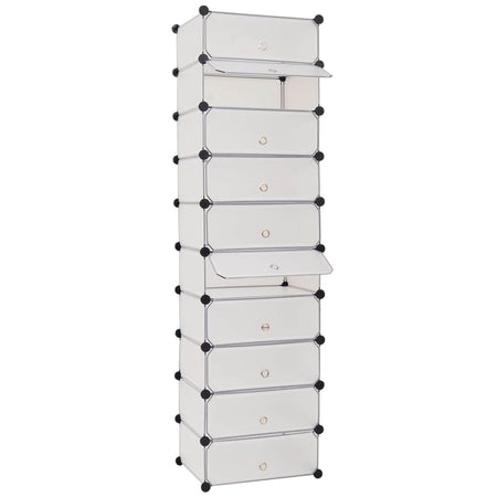 This stylish and functional shoe organiser has 10 compartments, each with a door, and will keep all your shoes clean and organised in one place. The shoe cabinet is made of high-quality plastic panels with steel frames to make them rigid and durable. Thanks to the plastic material, the shoe rack is easy to clean. The shoe organiser can be set up quickly and easily with the included plastic joints. The shoe rack is lightweight, so it can be easily moved.