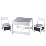 Introducing our Keezi kid's table and chairs set, crafted for durability and practicality. Made from non-toxic materials with reversible tabletops and chalkboard desks, it offers hidden storage and safe, easy-to-maintain edges. Simple assembly, ideal for ages 3 and above.
