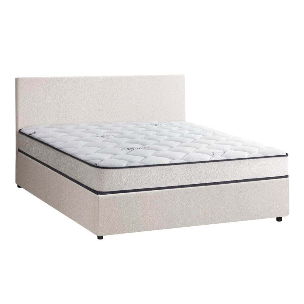 Best of all, the stylish bed frame also includes a comfortable Bedding Bonnell springs mattress to complete the set. This high-quality knitted and boucle fabric spring mattress features all the benefits of a Bonnell springs system that provides reinforced edging, motion isolation, anti-disturbance and full body support. Naturally, the highly breathable mattress complies with all required standards and certification and is hygienically safe from top to bottom and everything else in between.