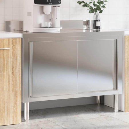 This versatile kitchen work table is perfect for food preparation and storage, making it an ideal addition to any kitchen, restaurant, school, or other commercial setting. Durable and stable construction: The work table is made of stainless steel, providing resistance to corrosion and rust for years of reliable use. The smooth surface is easy to clean and maintain, ensuring a hygienic food preparation area.Ample storage space: This table features a convenient bottom shelf, allowing you to keep cleaning supplies, kitchen utensils, and other tools within easy reach.Sliding door design: The sliding door design of this kitchen table provides convenient access to ingredients and supplies.Adjustable feet: The adjustable feet with a non-slip design ensure the stainless steel table remains stable and will stay put. protecting the floor from damage. Warning:To prevent it from tipping over, this product must be used with the provided wall attachment device.