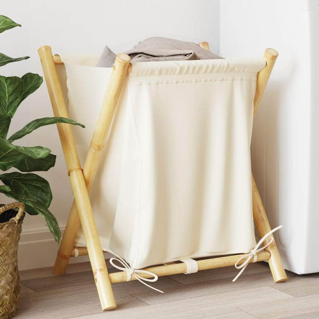 This bamboo laundry basket offers you a more convenient solution for storing your dirty laundry and having a tidy home. Durable fabric: The fabric features a simple and clean look while remaining breathable and long-lasting.Space-saving design: The foldable design allows for easy storage when not in use, making the washing basket ideal for small living spaces.Ample storage space: The laundry hamper offers plenty of space to store your laundry, and the things can be easily carried to the washing machine when required.Stylish and compact design: The clean lines and minimalist design make the laundry bag blend into your room perfectly. The clothes basket is also perfect for small rooms due to its compact size.