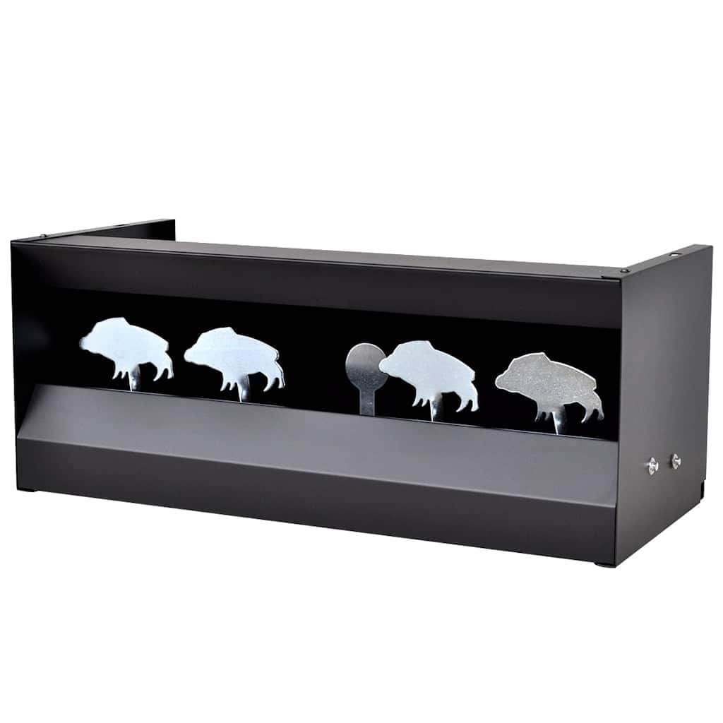 This magnetic knockdown pellet catcher target with 4 + 1 targets will be a great training aid for practicing target shooting. It is ideal for small guns such as air rifles, pistols and BB-guns. The magnetic knockdown system is great for competitions or target practice with each of the 4 animal figures being knocked down first, and then reset by hitting the central disc. Thanks to the heavy-duty steel construction with an angled back plate to avoid ricochets and collect pellets and BBs, it provides safe and challenging fun for the whole family. This magnetic knockdown pellet catcher target can be either wall mounted, or used free-standing on flat surfaces.