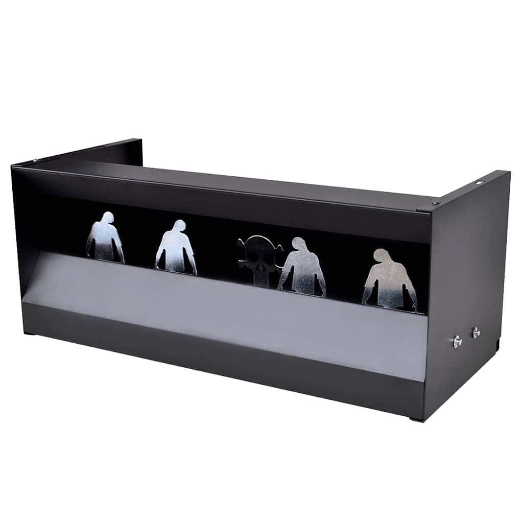 This magnetic knockdown pellet catcher target with 4 + 1 targets will be a great training aid for practicing target shooting. It is ideal for small guns such as air rifles, pistols and BB-guns. The magnetic knockdown system is great for competitions or target practice with each of the 4 zombie targets being knocked down first, and then reset by hitting the central disc. Thanks to the heavy-duty steel construction with an angled back plate to avoid ricochets and collect pellets and BBs, it provides safe and challenging fun for the whole family. This magnetic knockdown pellet catcher target can be either wall mounted, or used free-standing on flat surfaces.