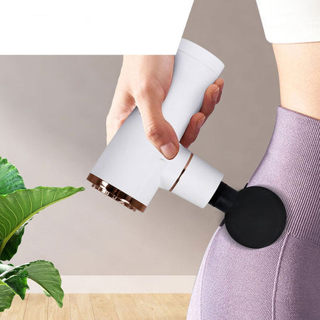 DESCRIPTIONRevitalize your muscles with this beautifully designed and precisely calibrated Mini Massage Gun. How does our massage gun work? The head of the gun oscillates back and forth with a controlled gentle vibration, slowly aim it on the tensed tissue and feel the magic! Vibrations combined with its subtle movement help improve blood flow thus giving a relaxing experience. Feel the instant soothing effect with its 10mm deep massage as it gradually subdues tightened muscle tissue. A truly mesmerizing feeling indeed.