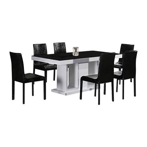Package contents: 1x7 Pieces Dining Suite Dining Table 6X Black Chairs in Rectangular Shape High Glossy MDF Wooden Base Combination of Black White Colour