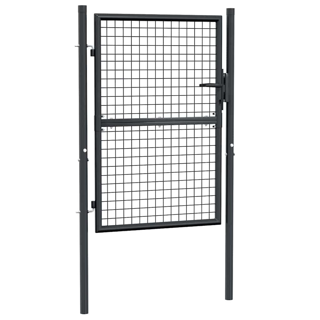 Featuring a high level of stability and durability, this fence gate can be used as a practical, modern entryway for your garden, patio and terrace. The garden gate is perfect in workmanship and manufactured from galvanised steel with a powder-coated finish, which is rust resistant and forms a sturdy construction. It has two side posts with bolt hinges for easy installation. Delivery also includes three keys.