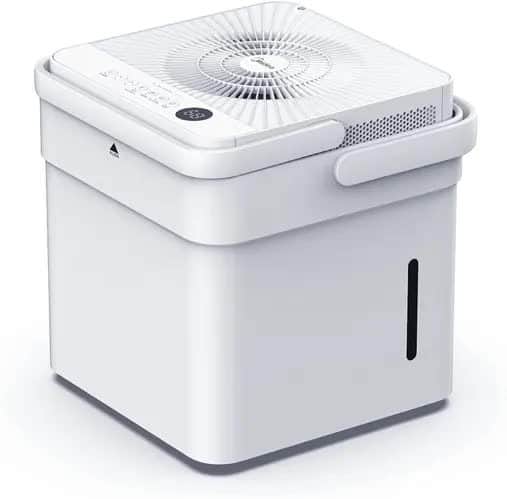 The Midea Cube dehumidifier has a unique lift-and-twist design that offers unparalleled flexibility: when operating in extended form, it has up to 3 times more water tank capacity than traditional dehumidifiers and can run much longer without the hassle of frequently emptying the tank; when in nested or drain form, the unit is half the size allowing compact storage or flexible draining.