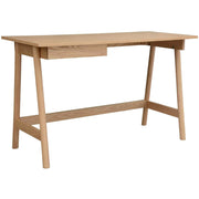 Made from the finest materials, this is a multi-purpose desk that adds usability and style without taking up much space. The desk looks great in a living room, home office, bedroom, or study room. It provides enough space for writing, office work, studying, or reading. The desk, designed in the Industrial Style, gives a sleek look to your room. It features a spacious top with a storage drawer underneath to keep your workspace well-organized.The desk has a fixed LHF drawer with full extension metal runners for smooth and long-lasting function. The drawer also has a black felt lining for an added touch of luxury. The desk in the Ash Natural finish is made of a combination of Ash wood, MDF, and Veneer Ash, all harvested in a sustainable way. The superlative combination of woods gives it great strength, water resistance, and beautiful looks. The easy-to-assemble desk comes with a one-year warranty.