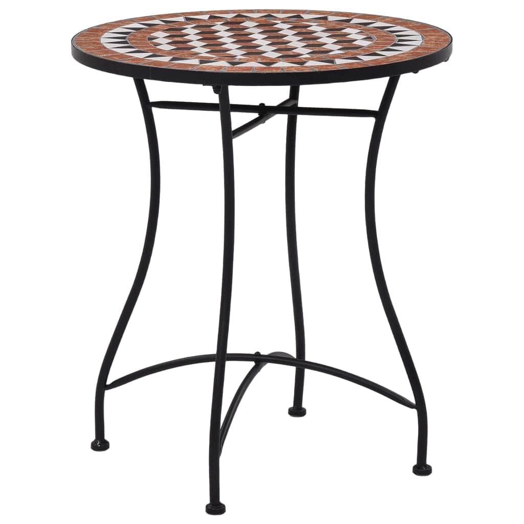 This mosaic table will make a great addition to your balcony or garden, serving as a coffee table to place your drink or any other necessity you need close at hand. Its powder-coated iron frame makes it very sturdy, while the ceramic table top is easy to clean. This table is easy to assemble. Please note this table is not suitable to be left outside in cold condition.