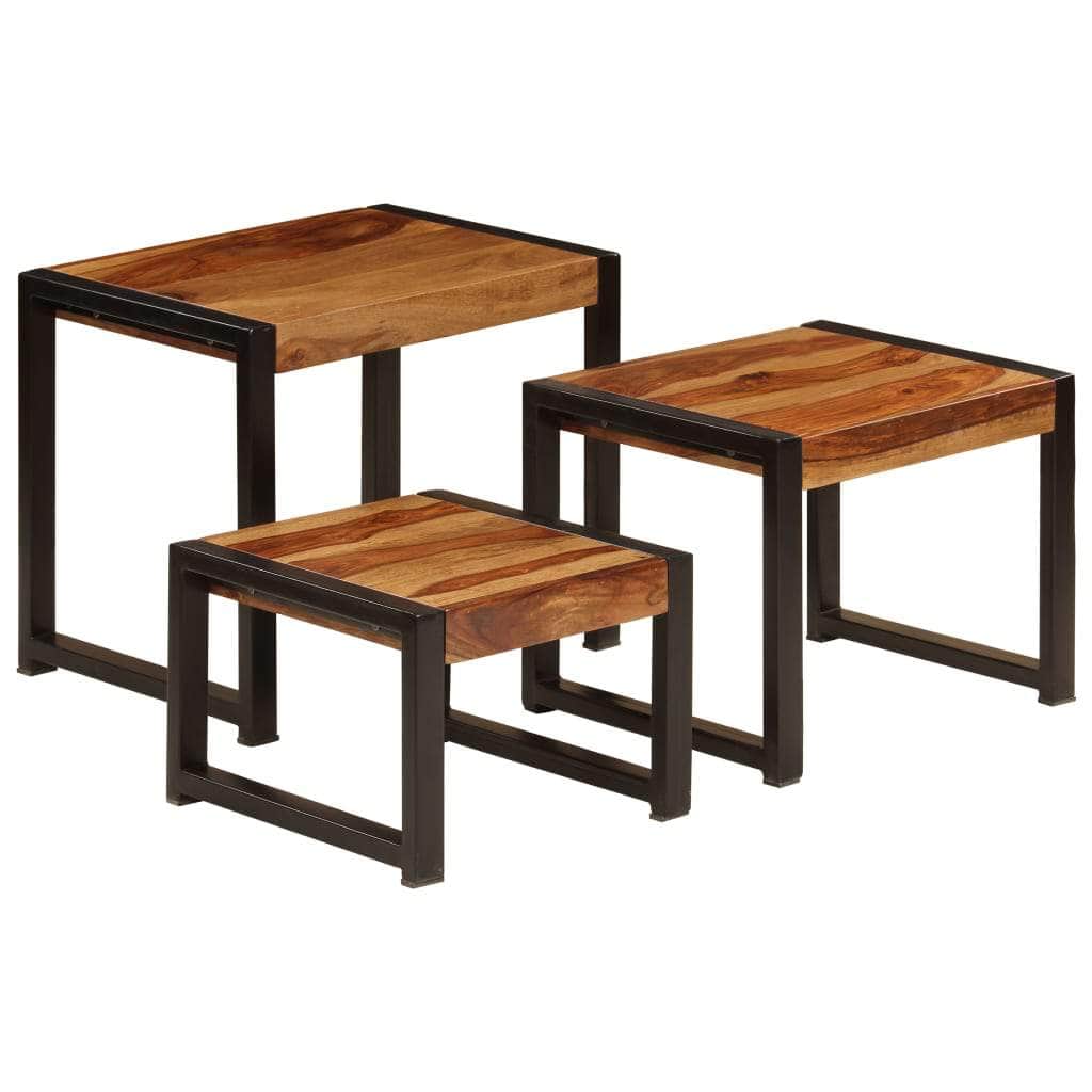 These gorgeous Sheesham wooden tables are trendy yet practical that will truly be a focal point of your room. This vintage-style set of 3 nesting tables is made of high-quality solid Sheesham wood. These tables will make a timeless addition to your home. Sheesham is a tropical hardwood that is famous for its rich grains and also known as rosewood or palisander. Thanks to the strong steel frame, the tables are very steady and durable. Being stackable, these tables save a lot of space when not in use. The craftsmanship adds to these tables spectacular retro style. Every step of the process is carried out with the greatest care, be it polishing, painting or lacquering. Important note: Colours vary from piece to piece, making each of our tables unique. The delivery is random, ensuring the exclusivity and individuality of your product.