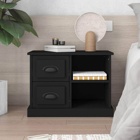 This bedside cabinet with an elegant design makes a timeless addition to your interior decor. Durable material: The engineered wood is of exceptional quality with smooth surface and also features strength, stability and resistance to moisture. Ample storage space: The bedside table is designed with 2 drawers and 2 compartments to keep things organised and within easy reach. Stable and sturdy table top: The top of the side cabinet is perfect for displaying your decorative items, picture frames and potted plants. Good to know:To make assembly as easy as possible, each product is delivered with a manual.
