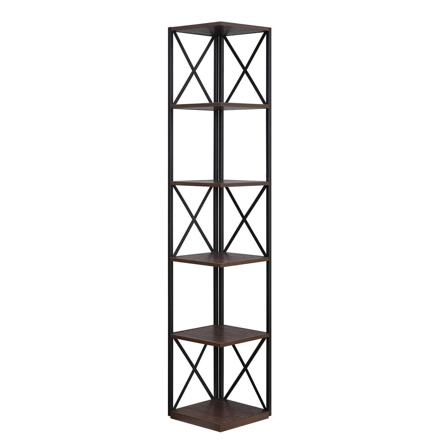 Enhance your home with the Nora Corner Bookshelf, a timeless addition to any interior. Its simple yet fashionable design ensures it fits seamlessly into various decor styles, such as industrial and modern themes. Its 5-tier shelf design offers generous storage and display space for your cherished items. Whats more, this beautiful corner display shelf features elegant and captivating cross-designed side panels that elevate its overall visual appeal. Its a remarkable piece that adds a touch of sophistication to your living space.