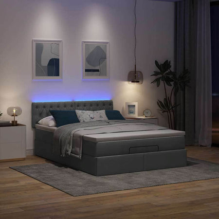 Use this ottoman bed with mattress to enjoy a restful night's sleep! It offers you both a storage solution and a comfortable sleep experience. Soft and durable material: Polyester fabric offers a combination of softness, breathability, and durability, ensuring you experience ultimate comfort and cosiness.Pocket spring mattress: This pocket sprung mattress has individual pocket springs that work independently to provide personalised support by reacting only to pressure in each area. This design prevents "roll-together" and reduces motion transfer compared to traditional open coil mattresses. Each pocket spring supports the body individually.Ample under-bed storage: Thanks to the hydraulic lift mechanism, the bed frame offers ample under-bed storage, maximising space without taking up extra floor area. With just a simple pull of the handle, the slat base lifts smoothly, allowing you to retrieve your items quickly and effortlessly.Comfortable mattress topper: This mattress topper enhances support and comfort with its soft, breathable surface while extending the life span of your mattress. Its removable cover allows for easy washing, making maintenance a breeze.LED Lights for a pleasant ambience: This bed features LED lights that can be easily adjusted to create a personalised light show. You can customise the modes, colours, and brightness to enhance the ambience of your interior space. Good to know:The product has a USB connector that requires a certified 5V USB power source (not included).For hygiene reasons, the mattress cannot be returned if the packaging is removed or opened.Only the part with a scissors symbol can be cut and only the part with the USB will continue functioning as before.