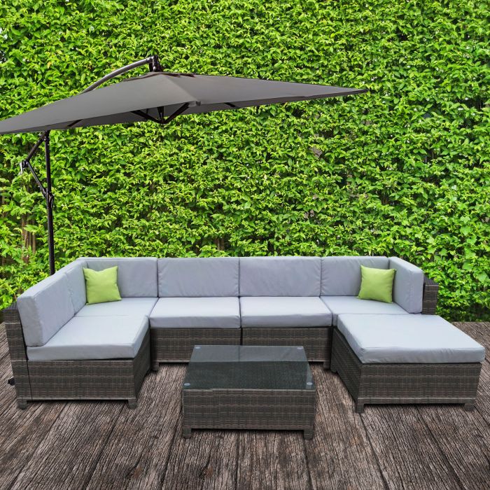 Experience contemporary living and functionality, with the 7-Piece Oatmeal Rattan Sofa Set designed by Milano! This Sofa Set has been designed with the outdoor space in mind and its 7-piece design allows for different configurations. Made from weather and UV-resistant PE Wicker Rattan with a sturdy and hidden Steel frame, it features plush foam seat cushions which are upholstered in waterproof, easy-to-clean polyester fabric. The cushions are also easily removable and easy to clean, to allow for both functionality during different seasons and for convenience. The coffee-table features a tempered glass table-top for peace of mind and the Sofa Set’s overall contemporary and minimalist design makes this conversation Sofa Set a perfect additional to any outdoor setting.