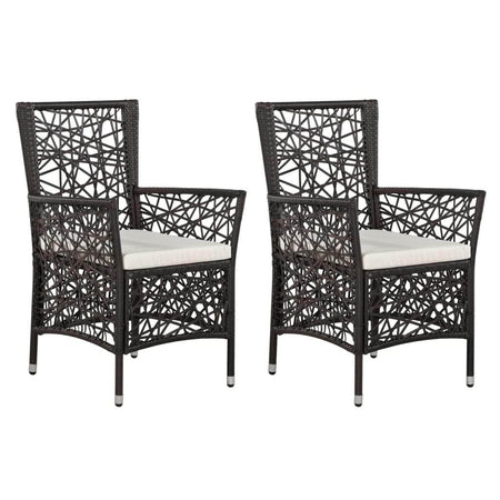 Our poly rattan chairs will become the focal point of your garden, patio or deck. These cushioned chairs feature an open weave pattern. Thanks to the water-resistant PE rattan, the garden chairs are hard-wearing, easy to maintain and suitable for daily outdoor use. The steel frames make the chairs sturdy and stable. Each chair is delivered with a comfortable, removable cushion. These dining chairs are easy to assemble. Note: we recommend covering the chairs in the rain, snow and frost.