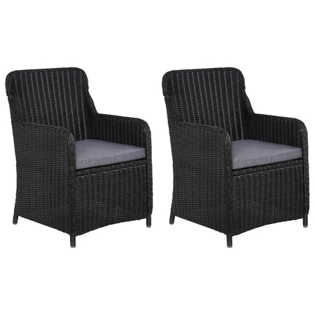 Our set of comfortable poly rattan armchairs is a perfect combination of style and functionality. The set will surely become the focal point of your garden or patio! The chairs are made of poly rattan, which is lightweight, water-resistant, easy to clean and designed to be used outdoors for year round. The powder-coated steel frames ensure the chairs considerably stable and durable. The ergonomically-designed shape and thickly-padded cushions will provide the ultimate seating comfort. The low-maintenance polyester cushion covers can be easily removed and washed. The chairs are easy to assemble. Delivery includes 2 armchairs and 2 seat cushions. Note: We recommend covering the garden chairs in the rain, snow or frost.