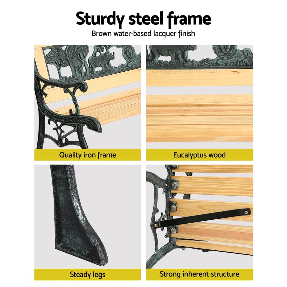 Want to create a beautiful outdoor space? Decorate and bring your outdoors to life with our gorgeously designed Gardeon kids garden benches. Add flower beds and some good lighting to create a dreamy outdoor ambience. Our outdoor garden bench is designed to impress. Featuring beautiful animal pattern with meticulous details, this kids garden bench is crafted from sturdy and durable iron frame with eucalyptus wood seat and has a strong inherent structure for ultimate durability and longlasting use. It can hold up to 150kg and comes with brown water-based lacquer paint for neat and well-finished look. Flaunting gorgeous back design, our garden bench has well-ventilated back that keeps you cool and sweat-free as you enjoy your great outdoors. It has strong fixings with steady legs for superb stability and steadiness. Furthermore, it has armrests to keep you comfortable, and the polished edges offers convenient and comfortable sitting. You can style this kids garden bench both indoors and outdoors, giving you the flexibility to choose what best suits your space. Shop our Gorgeously built Gardeon outdoor kids garden bench today to refresh your outdoors.