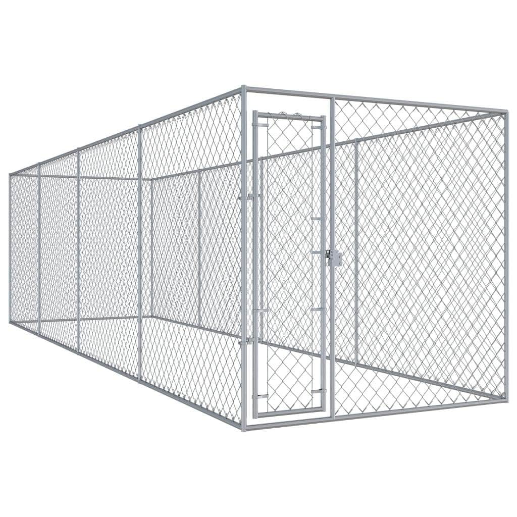 This versatile dog kennel has multiple uses: playing, exercising, training, or simply keeping your dogs safe. It will be the perfect play paradise for your furry friends! This large dog kennel provides ample exercise space while the chain link mesh all around helps prevent mischief and unexpected accidents, while enabling ventilation. Thanks to the sturdy and heavy-duty galvanised steel construction, this dog kennel is durable and built to last. The hinged door ensures extra security and safety for your dogs thanks to the lockable latch system. Assembly is really easy.