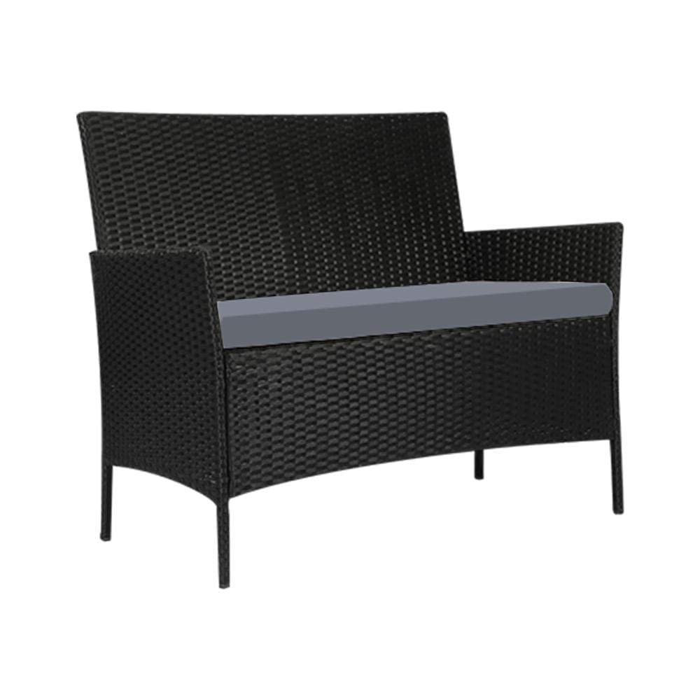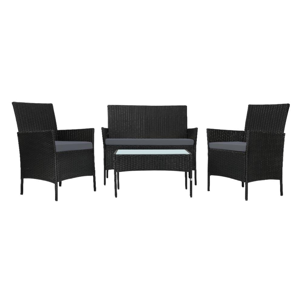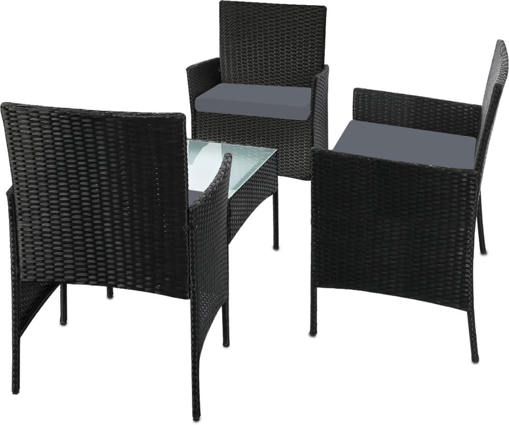 Outdoor Furniture Setting 4PCS Patio Garden Table Chairs Set Wicker Seat Black and Grey