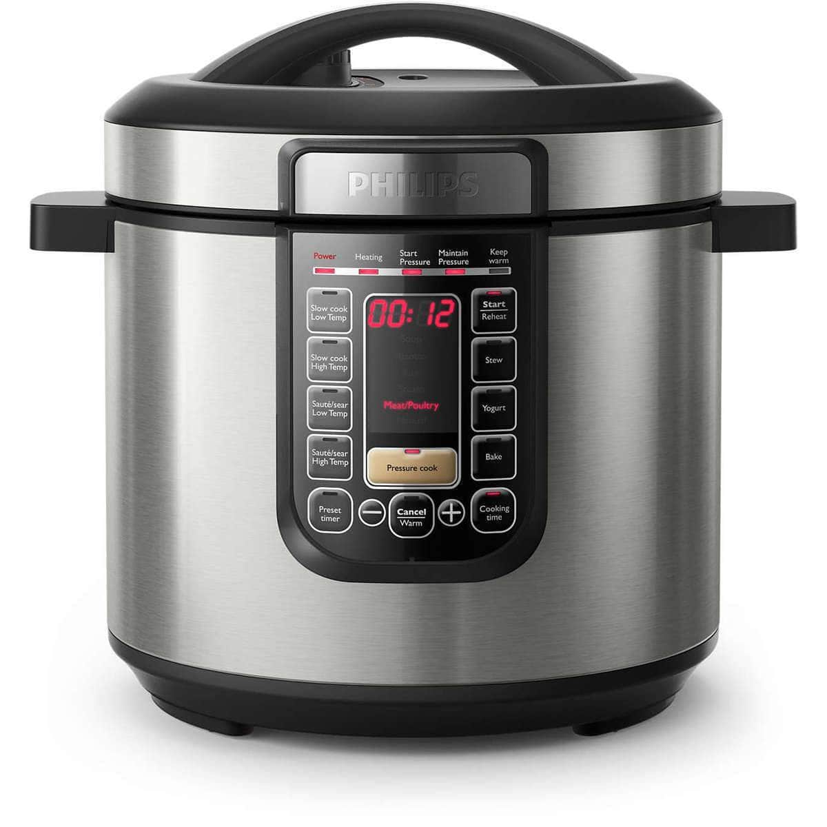 ProCeramic+ pot 6L Capacity 1300W Power Automatic keep warm for 12 hours 9 safety protection systems Included: Measuring cup, Recipe booklet, Scoop, Steaming tray/basket Colour: Silver Material of main body: Stainless steel Product features: Preset cooking function, Time control Keep warm function: 12 hour(s) Capacity bowl: 6 L Cord length: 1.2 m Frequency: 50 Hz Voltage: 240 V Power: 1300 W