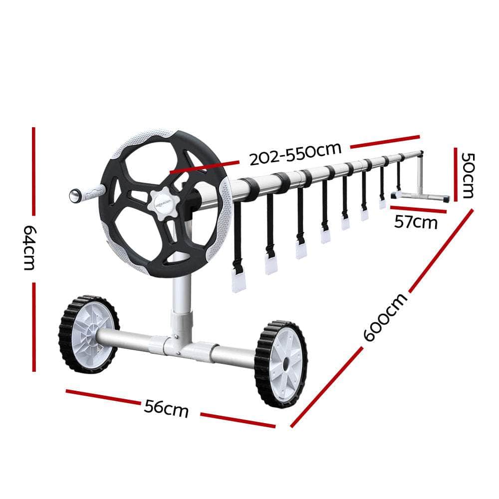 Keep your pool clean from debris and warm from the power of the sun with Aquabuddy's Aluminium Pool Roller and 10m x 4m Pool Cover. Made of sturdy aluminium construction with full adjustability, this pool roller is suitable for pool cover with a width between 2.4m-5.55m. It is equipped with premium anodized aluminium alloy stands, plastic wheels for maximum portability, and an exclusive non-slip spinning wheel design to easily roll up your pool cover and get right in the water. The solar pool cover is made from premium low-density polyethylene 500 Micron, which makes it extremely durable. What's with the blue top and silver underside, you ask? Well, the design allows the sun rays to penetrate the pool, increasing the temperature and significantly reducing water evaporation. Aquabuddy helps heat the pool easier and faster, and retain more heat in the pool for a longer time. Finally, the cover keeps the pool water clean all year round, reducing the time spent maintaining the water, pumps and filters. Save money, save time, save summer! Get the best of natural resources and save money on chemicals and water; get yourself an Aquabuddy Pool Roller and 10m x 4m Cover set today!