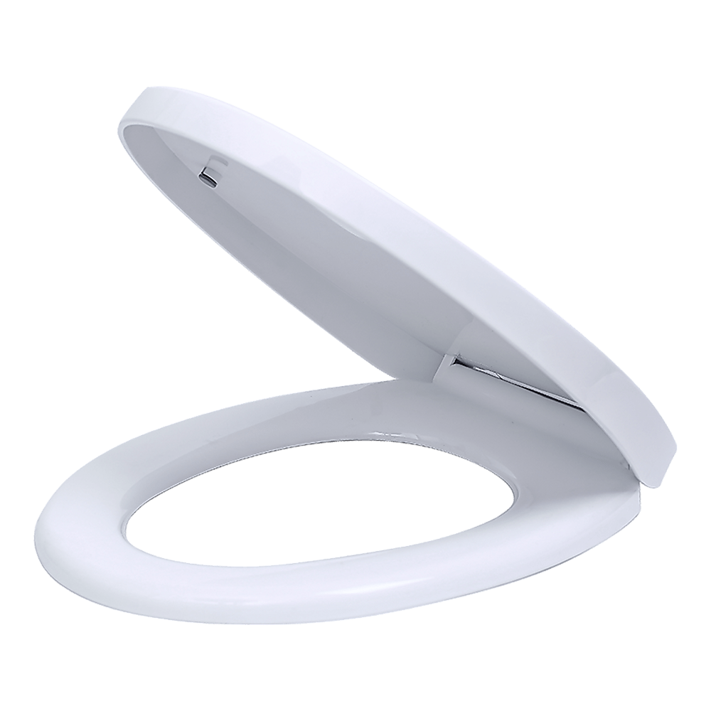 Crafted in a pleasing oval design, this white toilet seat will blend into the design scheme of any bathroom or powder room. Its tough Thermoset plastic construction ensures that it will last endure for longer, even with heavy use.