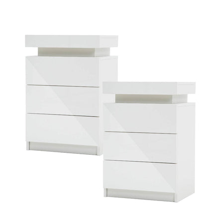 La Bella Bedside Table 3 Drawers RGB LED Bedroom Cabinet Nightstand Gloss GLORY - Black
