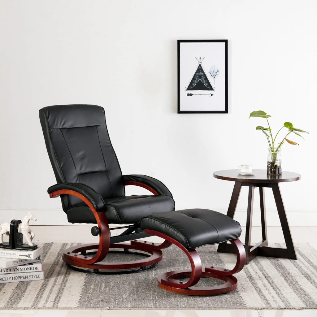 Sit down, drift away, and enjoy a wonderful relaxation after a busy day on this luxurious and highly comfortable reclining chair. The distinctive and luxury reclining chair with a freestanding stool will add a great addition to your home and office when you watch TV, work hard or have a rest. Featuring a reclining mechanism, the angle of the TV chair can be easily adjusted from 125 to 130 degrees to meet your need. Upholstered in faux leather and supported by solid construction, the recliner is exceedingly durable and easy to clean. The thickly padded seat, backrest and armrests are pretty comfortable, bringing you full relaxation after a busy day. The reclining chair is easy to assemble.