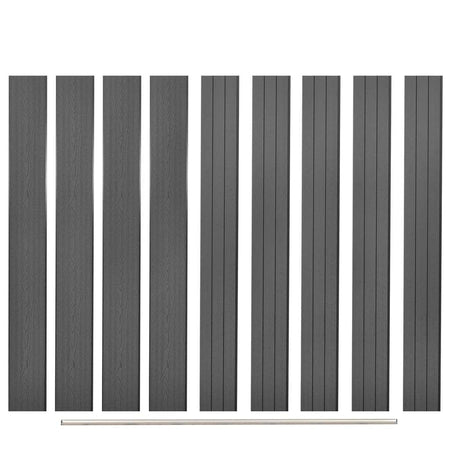 Our fence boards with an ending bar are the replacement for our fence panel sets (SKU 3053225-3053242, 3054431). They can be used as garden barrier or residential fence for privacy and security. These WPC boards have a wood grain print on one side and regular print on the other side, so you can choose the design you like best. Our wood-plastic composite fence boards do not require any additional treatment like oiling or painting. They are very durable and resistant to rot or rust. Thanks to the aluminium top profile, the boards can be tightly attached to each other, which increases their rigidity and strength against impact. Designed with the modular system, the fence boards allow you to expand the fence freely. Delivery includes 9 WPC boards and 1 ending bar. Please note that these fence boards are the replacement for our fence panel sets (SKU 3053225-3053242, 3054431) and we also offer replacement posts (SKU 49076-49077 and 148986-148987).