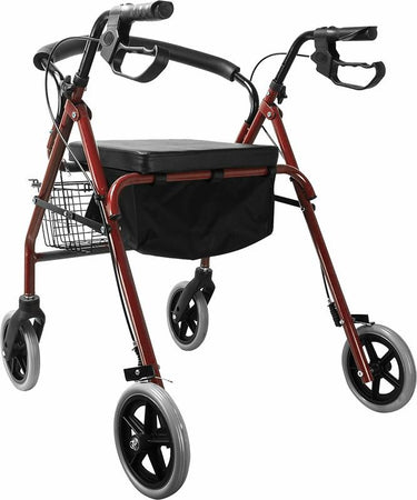 If you (or a loved one) lack the mobility you once had due to injury, disability, or age, this rollator walker from Randy & Travis Machinery is the perfect solution. Made from ultra-lightweight anodised aluminium, it's easy to push and easy to fold and load into your vehicle. Handling is easy, too, thanks to its swivelling front wheels and dual-action loop brakes. Contoured grips give you superb control. Its rich red colour and sleek lines lend an air of elegance.
