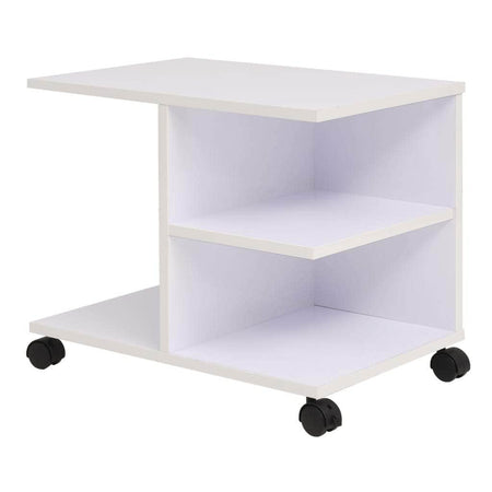 Our modern rolling shelf has a functional design and will make a great addition to your study, office, or living room. It can also be used as a side table. The storage shelf consists of a engineered wood frame with a melamine finish, which is easy to clean. The sturdy top is ideal for placing various objects such as books, laptops, etc. Underneath the top, 1 large compartment and 2 small compartments also provide ample storage space for all kinds of things. The castors make the shelf easy and convenient to move. The rolling shelf is easy to assemble.