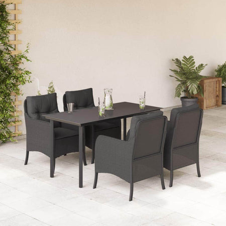 This garden dining set is a great choice for al fresco dining or just relaxing in the garden, backyard, or patio. Durable material: PE rattan, also known as poly rattan, is a strong, low-maintenance synthetic material that looks like natural rattan. It's lightweight, easy to clean, and commonly used for outdoor furniture due to its durability and weather-resistant properties.Comfortable seat experience: This outdoor furniture, complete with thickly padded cushions, offers a comfortable seating experience.Removable and washable cover: These seat cushions feature removable covers for easy washing and maintenance.Glass tabletop: The outdoor table's top is made from strong and durable tempered glass, making it easy to clean with a damp cloth and adding a touch of elegance to your outdoor space.Robust and stable frame: The powder-coated steel frame ensures that the garden furniture is strong and stable for daily outdoor use. Good to know:To make sure your outdoor furniture stays beautiful, we recommend protecting it with a waterproof cover.