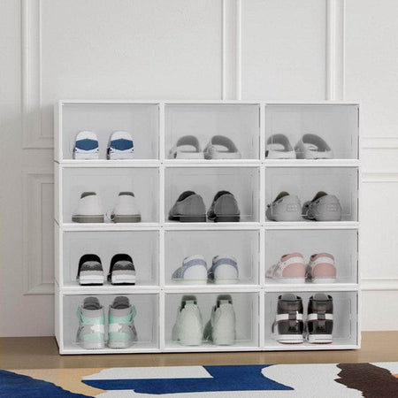 For home shoe storage, you can't beat the Abel Shoe Storage Boxes from . With a foldable and stackable design, these shoe boxes are not only space-saving but also incredibly convenient. Made from premium PP plastic, they are durable and can hold up to 5kg of weight per box. Each box is easily washable thanks to its smooth surface. The ventilated hole ensures proper air circulation, keeping your shoes fresh and odour-free. The clear flip-out lid allows for easy access to your shoes, while the multifunctional design makes them suitable for various uses. Assembly is a breeze, making these shoe boxes a hassle-free addition to your home. With Abel shoe boxes, you can keep your shoes organized and protected in style.