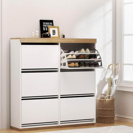 3 tiers shoe rack with 6 flip-out drawers