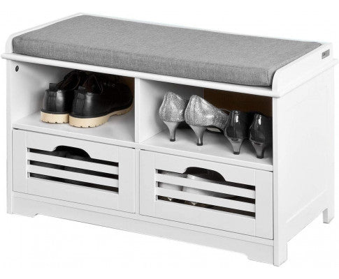 Padded shoe bench with 2 drawers and shelves, ideal for hallway, locker room, bedroom and etc.