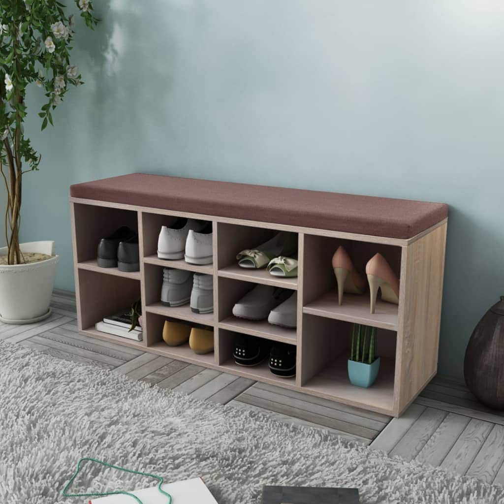 This shoe storage bench, with a simple but stylish design, will make a great addition to your decor. The bench provides ample space for storing up to 10 pairs of shoes. The top is upholstered in thickly foam-padded fabric, so you can sit comfortably while taking your shoes off or putting them on. Made of high-quality materials, the shoe storage bench is very sturdy and durable. Delivery also includes assembly accessories. Assembly is very easy.
