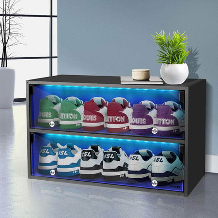 Display your shoes in your light-up shoe box. Show off up to 6 US15 sized shoes. Pick up a few more sets for all your shoes. So many shoes! Organise your shoes by colour or season or size or however you like.
